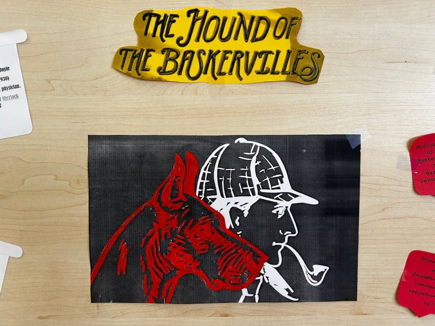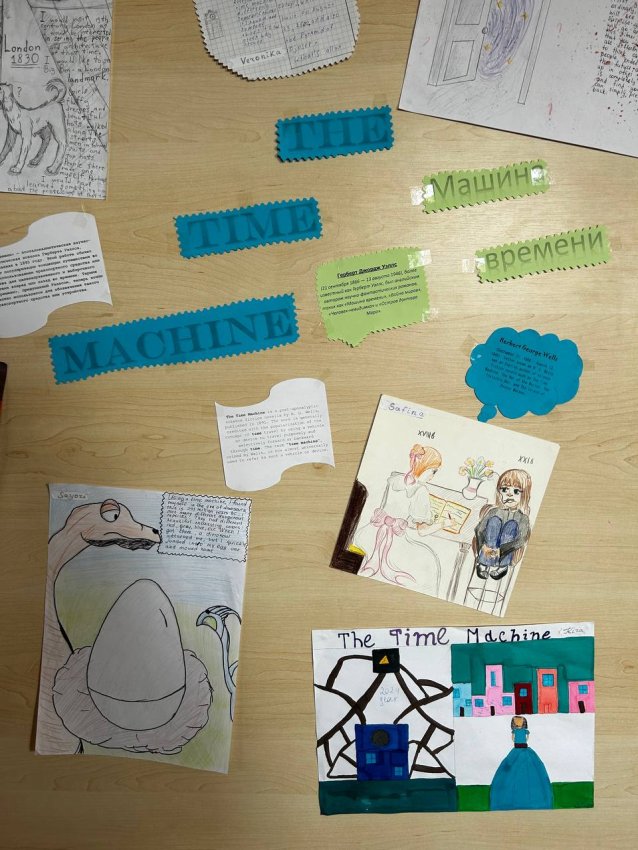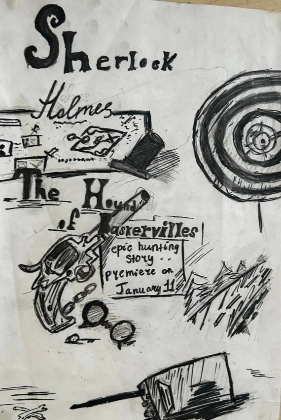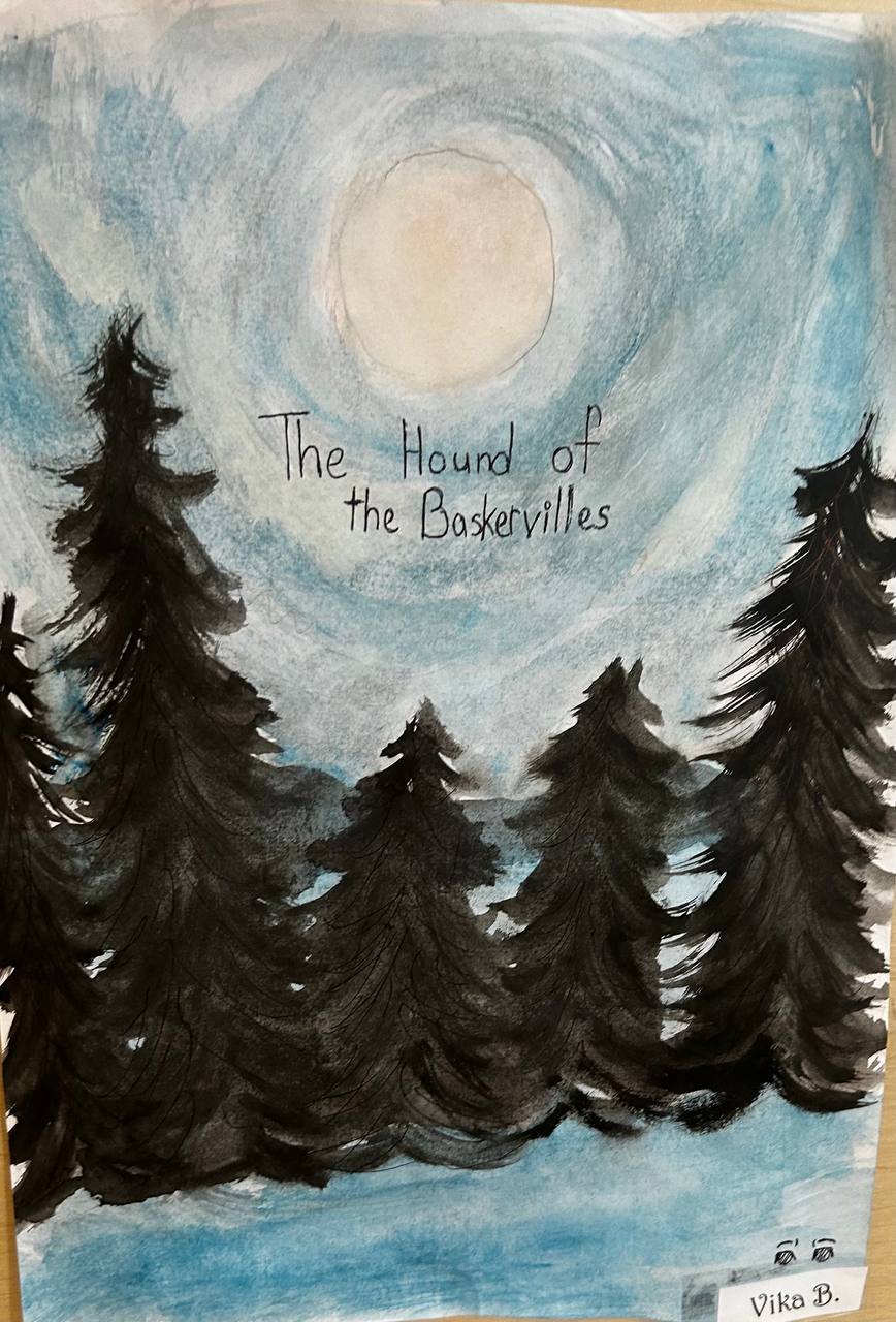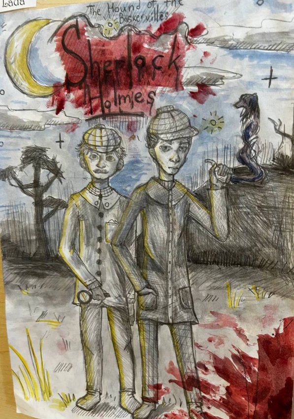 В рамках модуля "Reading for pleasure" на уроках английского языка, учащиеся 7 класса подготовили творческие работы на темы: "Sir Arthur Conan Doyle: The hound of Baskervilles", "H.G. Wells: The time machine". Учителем английского языка Гофман М.А. организована выставка рисунков.