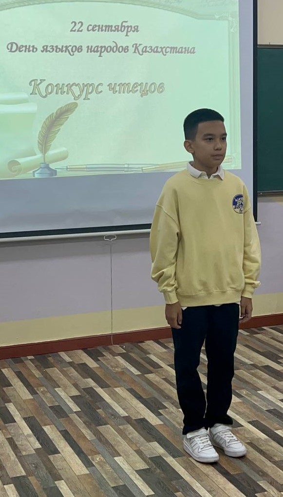 22 сентябрь 2023 0 1 2 3 4 5 День языков народов Казахстана 22.09.2023г. в школе «Новое начало» проведен конкурс чтецов, посвященный Дню языков народов Казахстана. Учащиеся с 3-8 класс приняли в нем активное участие.