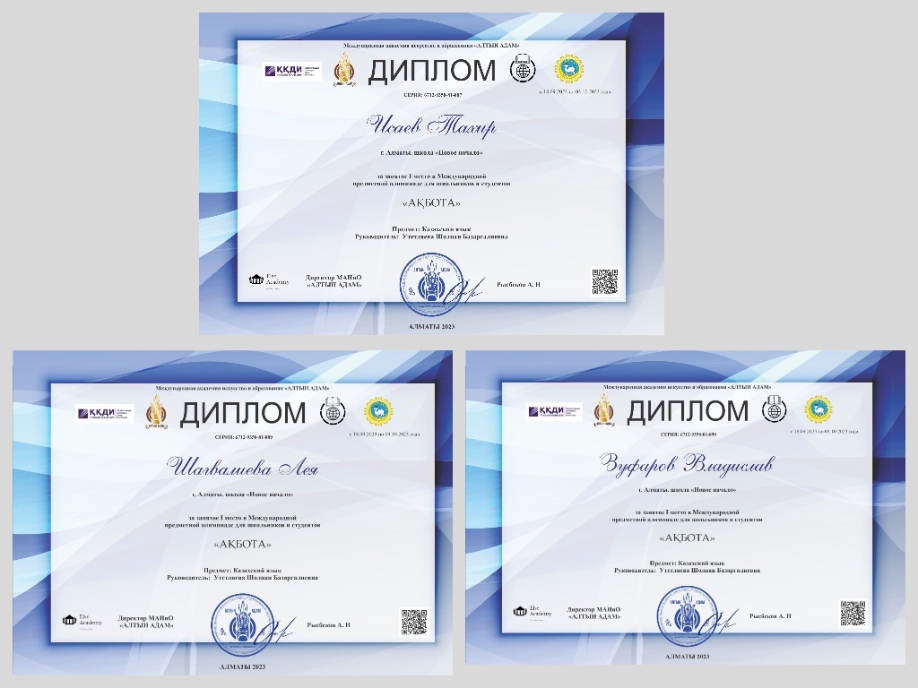 29 сентябрь 2023 0 1 2 3 4 5 I Международная предметная олимпиада "АКБОТА" для школьников Победители в номинации - казахский язык и литература для 6 классов:Зуфаров Владислав,Исаев Тахир,Шагвалиева Лея.